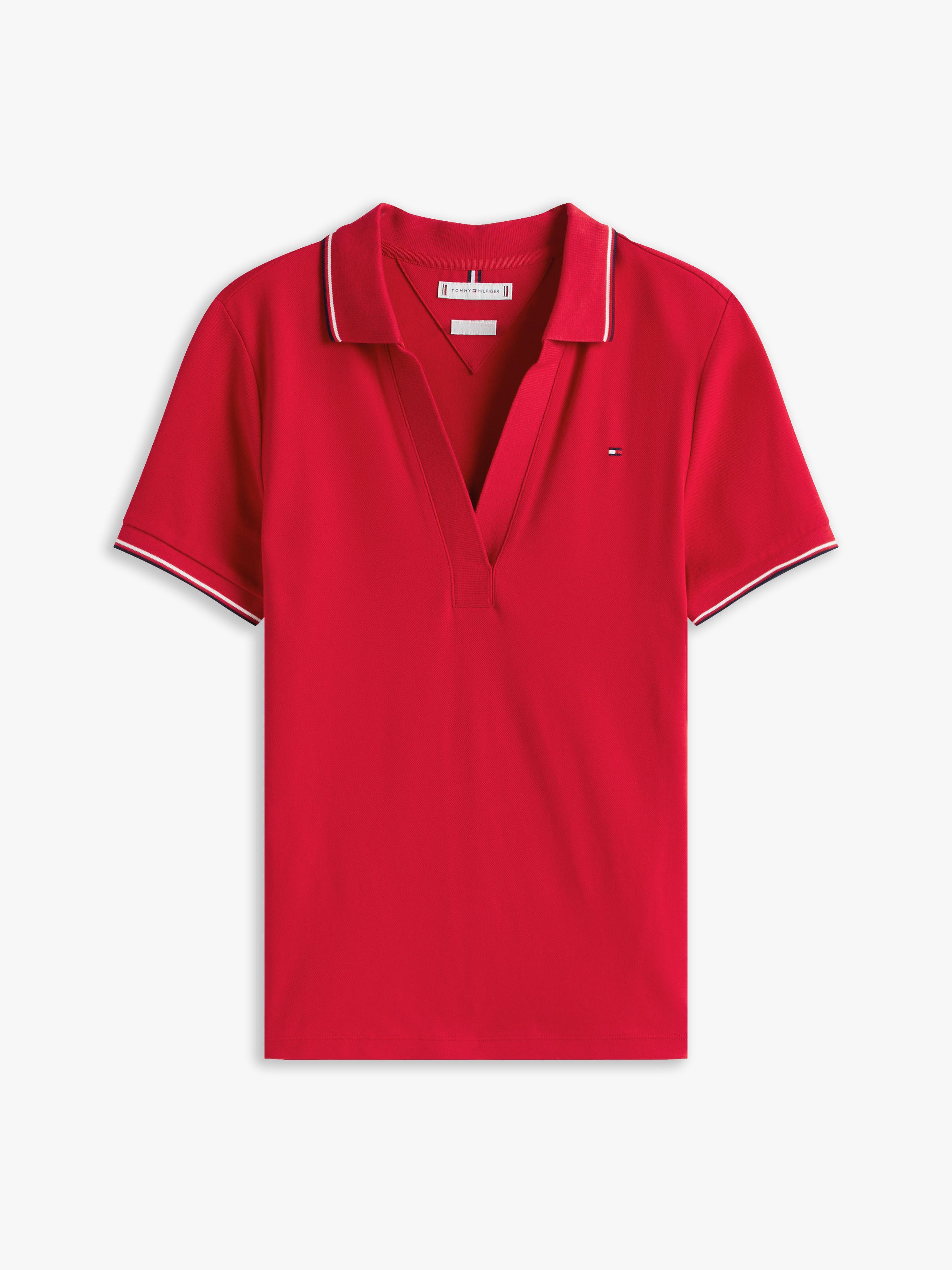 التفاصيل يأتي هذا القميص الرياضي بياقة بولو من مجموعة 1985، مستوحى من العام الذي أطلق فيه Tommy Hilfiger علامته التجارية، ويتميز بياقة V عميقة وتفاصيل بألوان الشعار. أبرز التفاصيل - قطن مطاطي - من مجموعة 1985 - ياقة وأساور بولو بحواف مميزة بألوان الشعار - فتحة ياقة مفتوحة - شعار Tommy Hilfiger - تطريز علم Tommy Hilfiger على الصدر القصة والمقاس - قصة ضيقة - ترتدي العارضة مقاس S ويبلغ طولها 1.76 م الخامة والعناية - 96% قطن، 4% إيلاستين