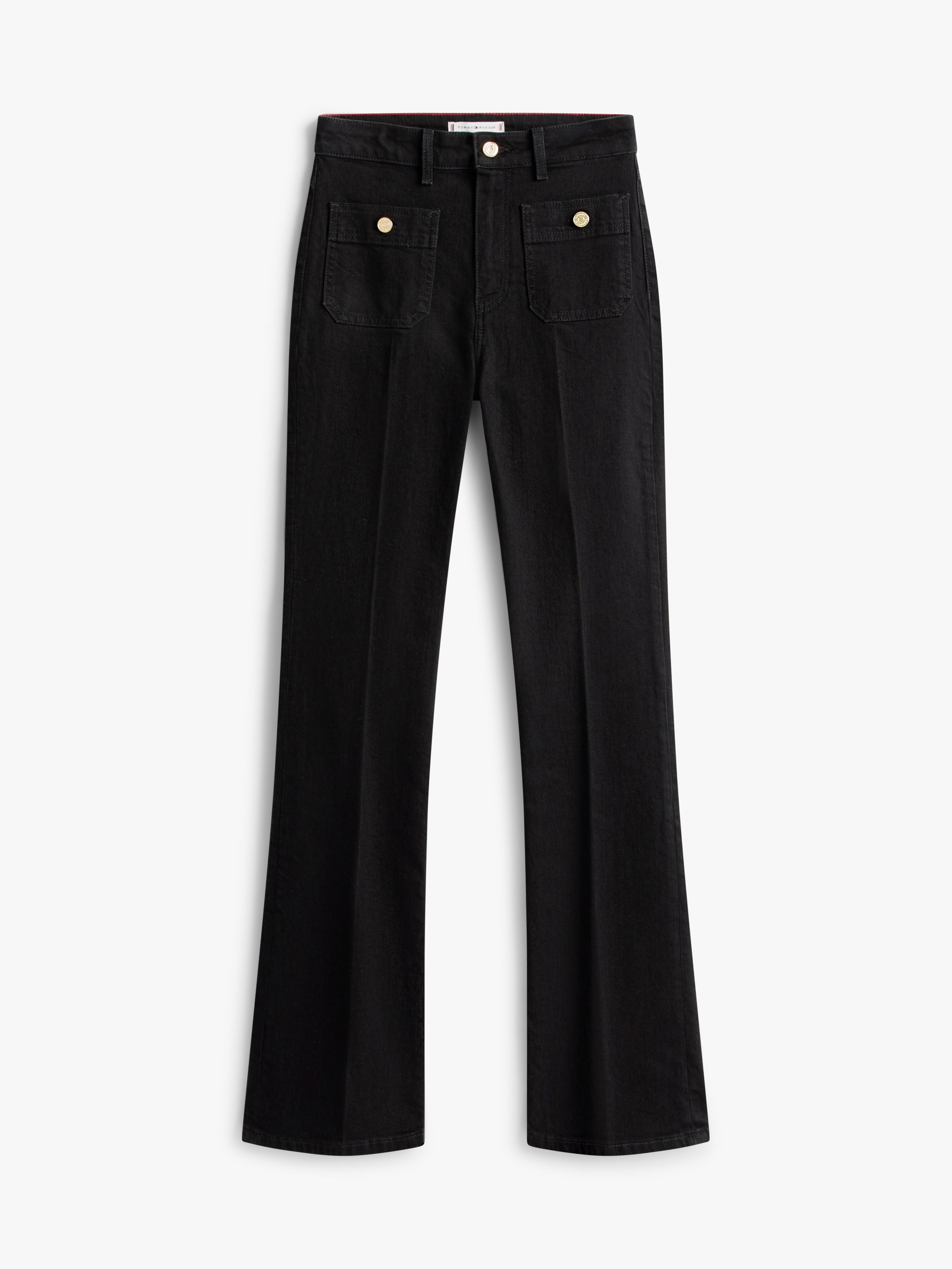 التفاصيل تميزي بإطلالة أنيقة وعصرية مع بنطلون جينز بوت كات اسود بخصر مرتفع، يتميز بثنيات مكوية من الأمام والخلف تمنحه مظهرًا مصقولًا، وتفاصيل معدنية ذهبية تضيف لمسة راقية. أبرز التفاصيل - دنيم مطاطي من القطن - ثنيات أمامية وخلفية مكوية - جيبان أماميان بزر إغلاق - جيبان خلفيان بارزان - أزرار ذهبية بنقشة الشعار - يحمل توقيع Tommy Hilfiger - تطريز علم Tommy Hilfiger على الجيب الخلفي القصة والمقاس - قصّة بوت كات - خصر مرتفع - العارضة ترتدي المقاس 28/32 وطولها 1.76 متر الخامة والعناية - 98% قطن، 2% إيلاستين - وزن الدنيم: 11.35 أونصة