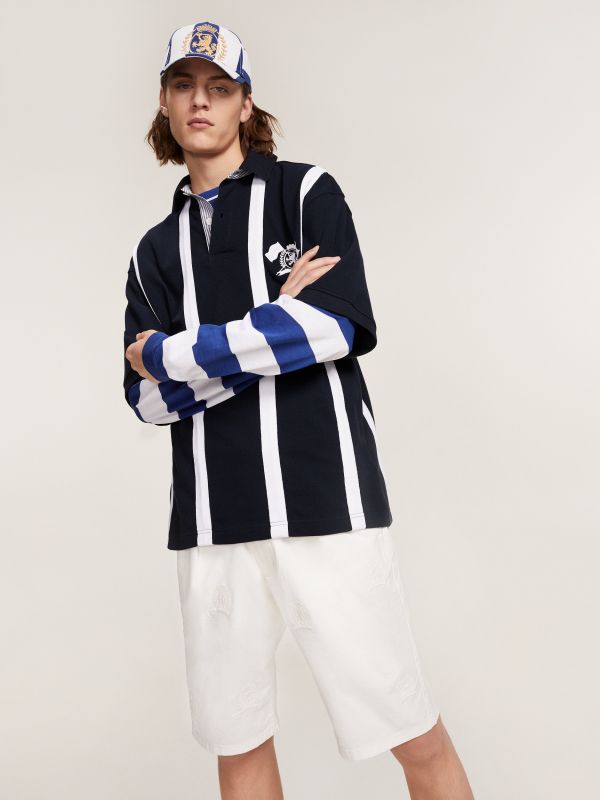 بولو بتصميم فريد ولافت مع الخطوط المميزة، القصة المريحة مستوحاة من التراث وشعار تومي.