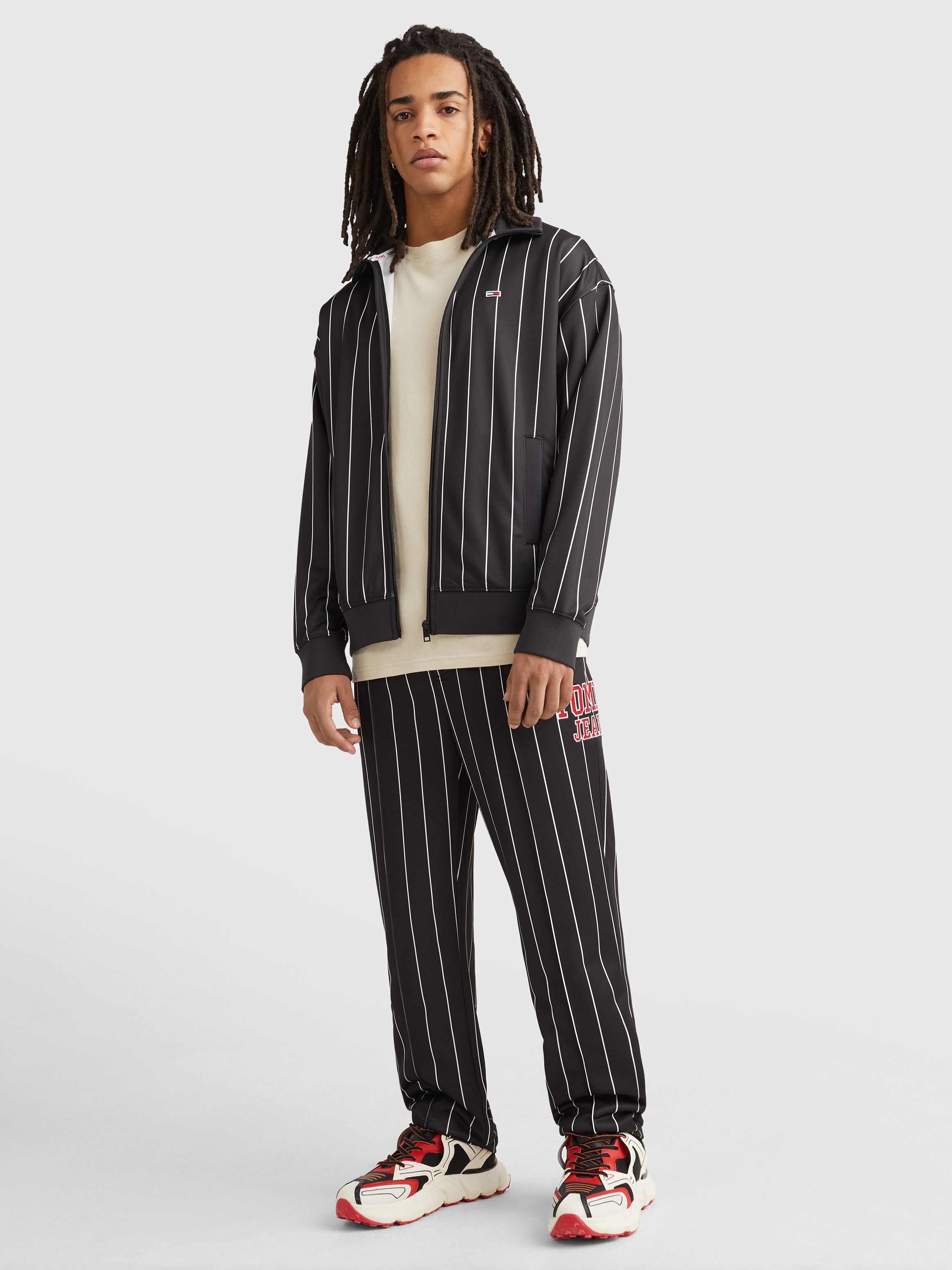 أضف لمسة أنيقة إلى إطلالتك الكاجوال وارتدي هذا البنطلون الجوغر المريح والمزين بطبعة خطوط رائعة.