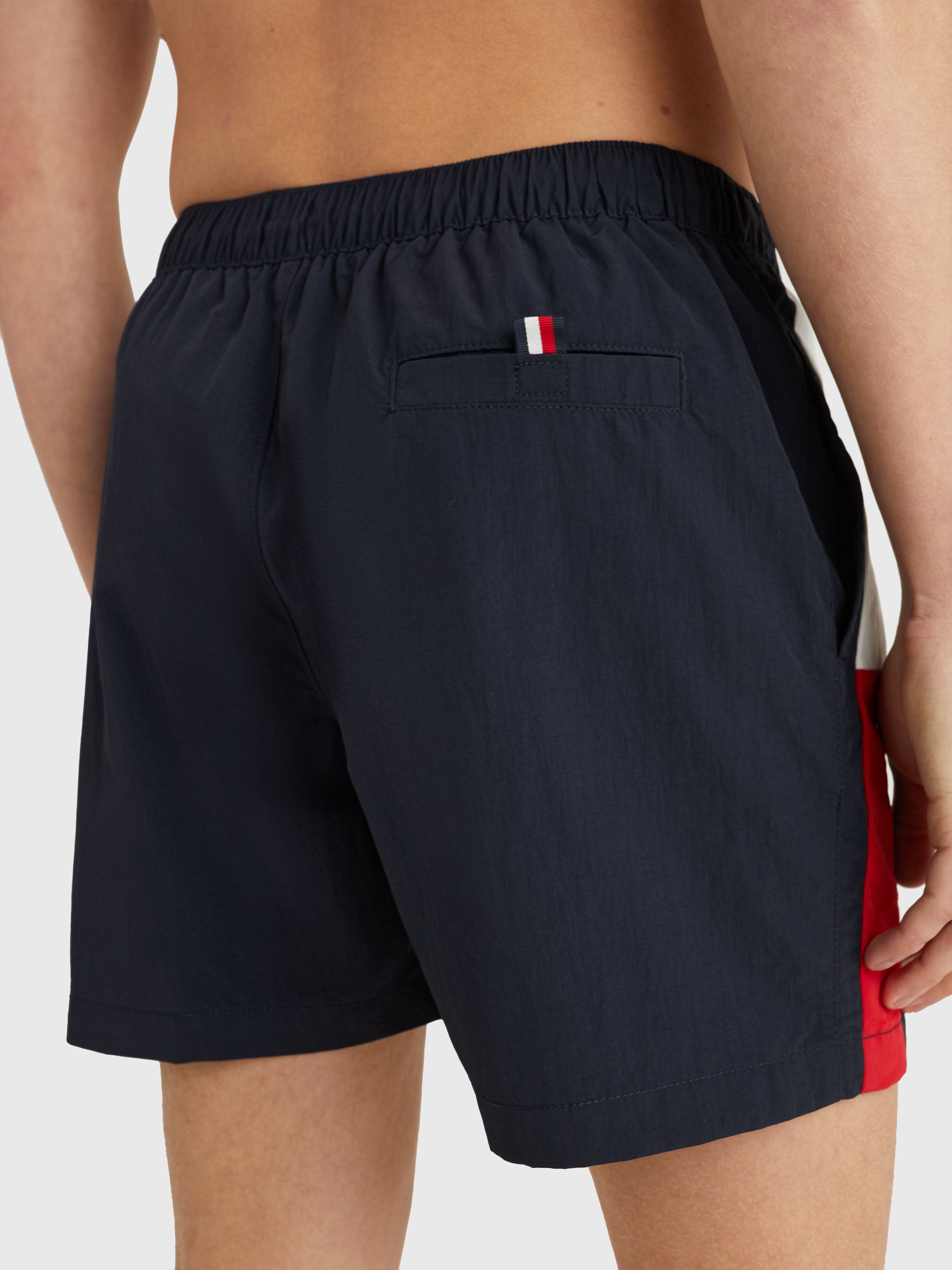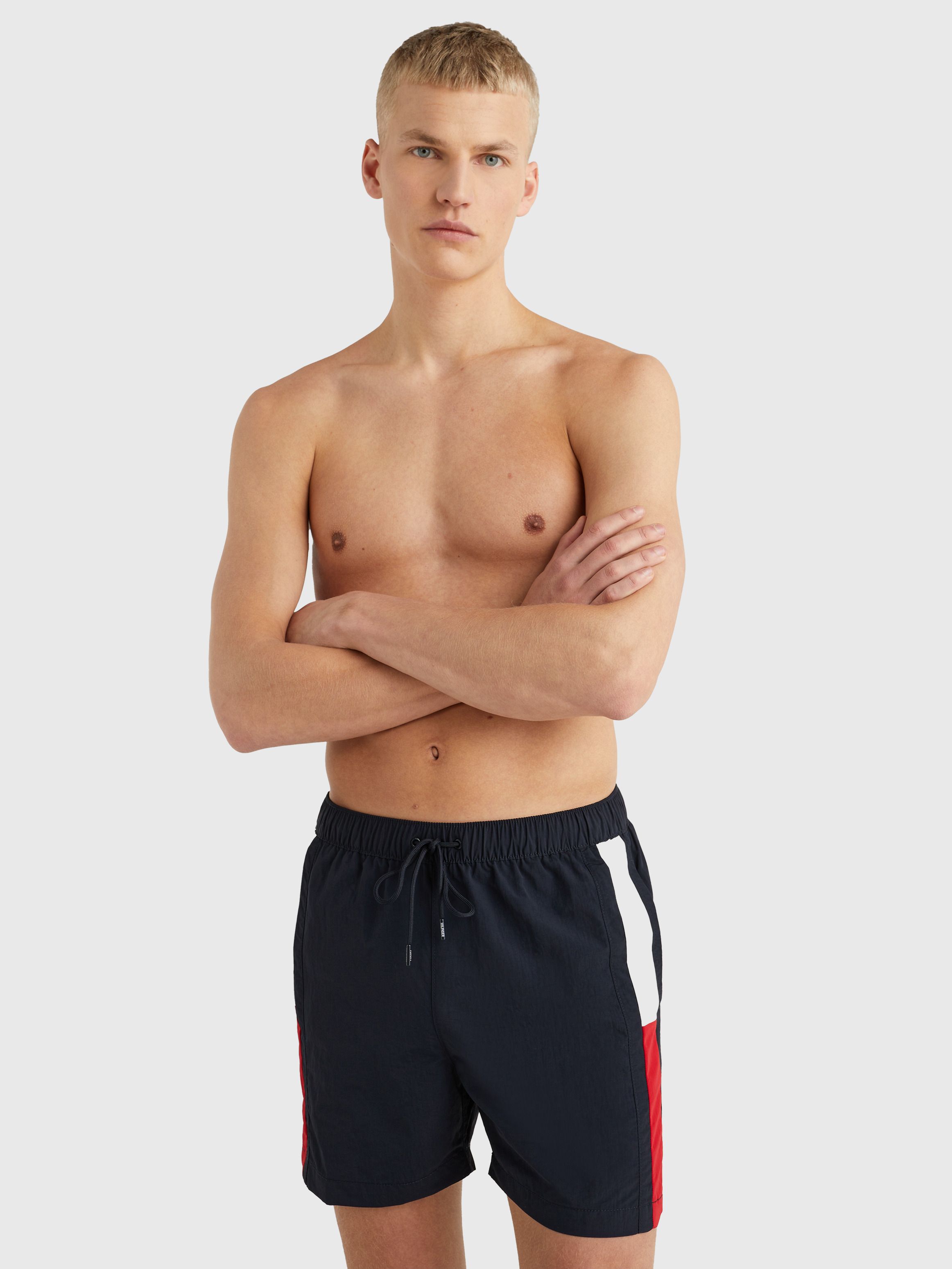 أضف لمسة من الألوان إلى ملابس السباحة الخاصة بك مع شورت السباحة هذا الذي يتميز بخصر مريح برباط وتفاصيل الشعار على الساق.