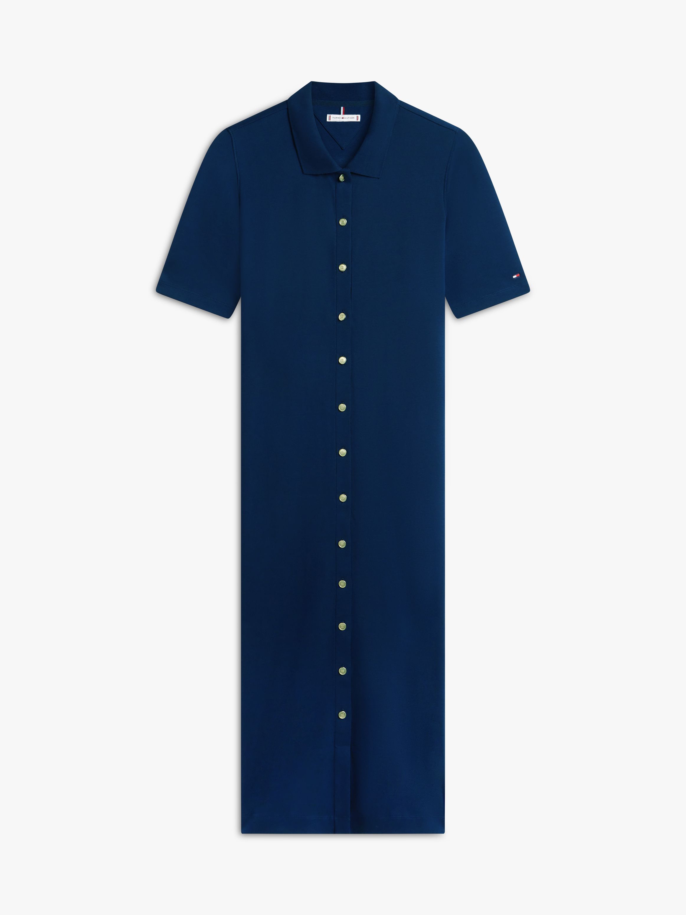 يجمع هذا الفستان المستوحى من تصميم البولو بين الأناقة الكلاسيكية والراحة، إذ صُنع من قطن خالص بلمسة حريرية ومزين بأزرار ذهبية منقوشة. أبرز التفاصيل قطن خالص لمسة حريرية إغلاق بأزرار ذهبية ياقة بولو مضلعة شريط مميز داخل فتحة الرقبة علامة تومي هيلفيغر نقش علم تومي هيلفيغر على الأزرار تطريز علم تومي هيلفيغر على الكم القصة والمقاس قصة ضيقة أكمام قصيرة طول ميدي فستان بولو Fit and Flare 120 سم من الكتف إلى الحافة (مقاس S) الخامة والعناية 100% قطن