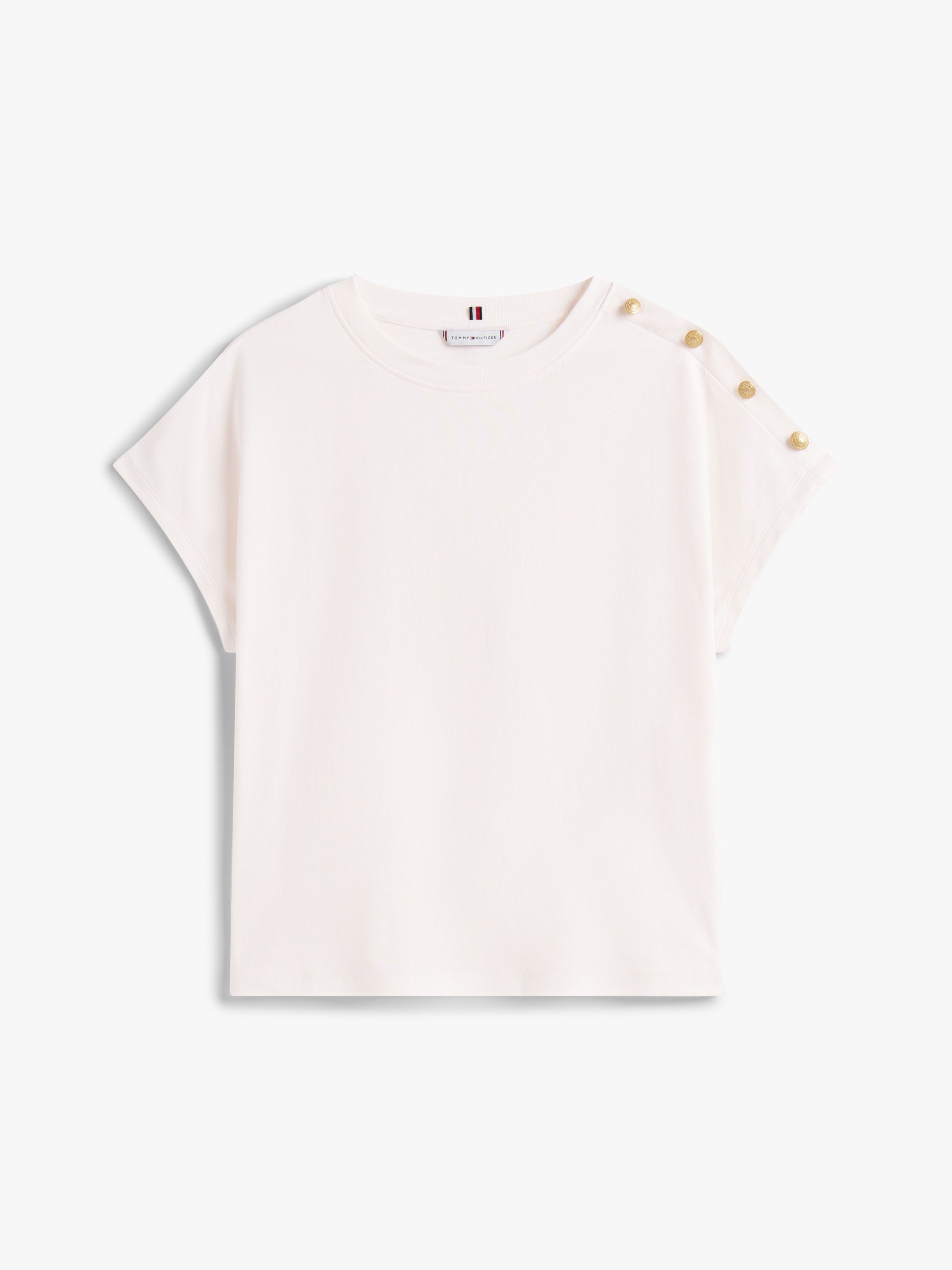 • تيشيرت بأزرار ذهبية عى الكتفين