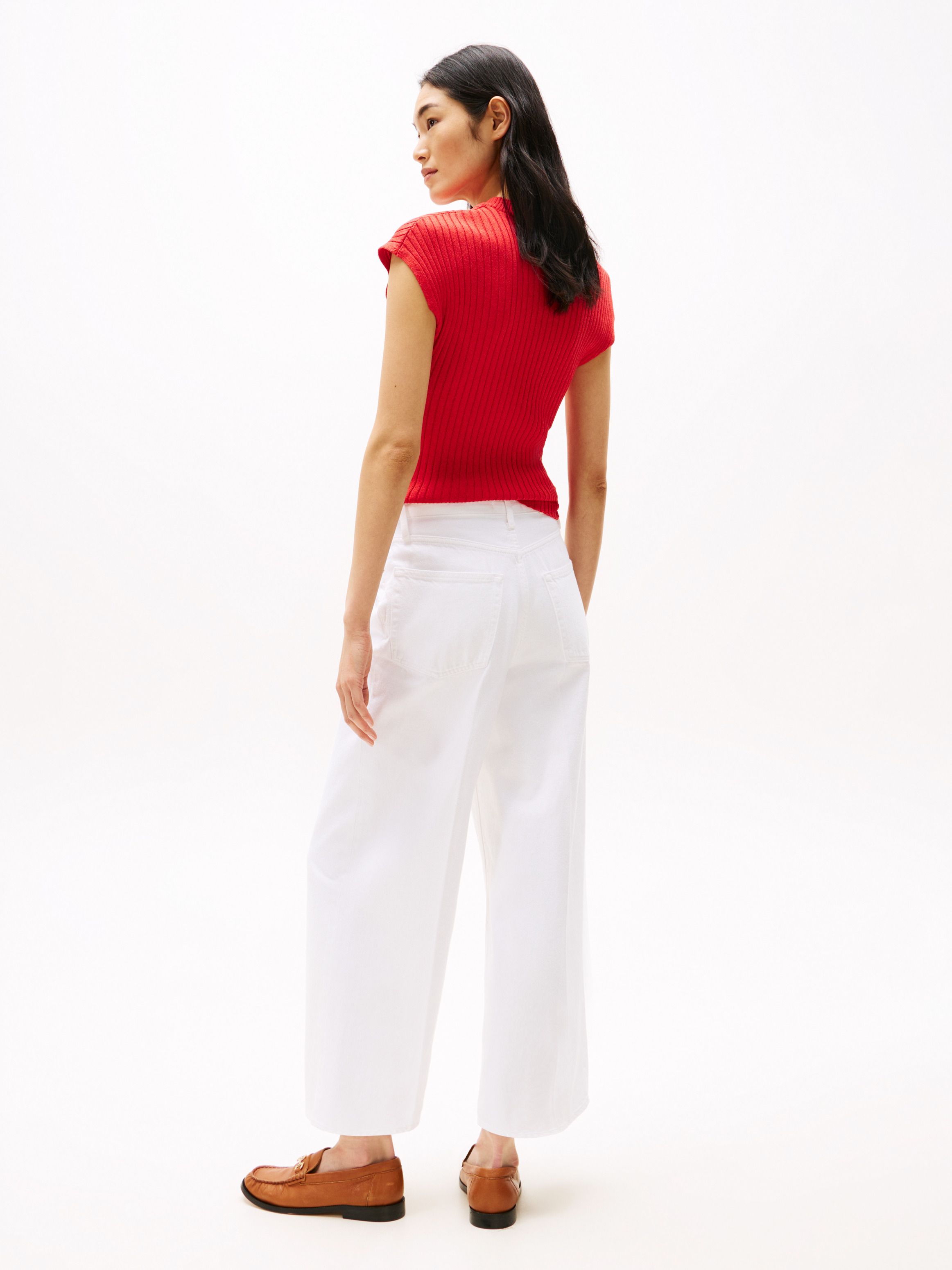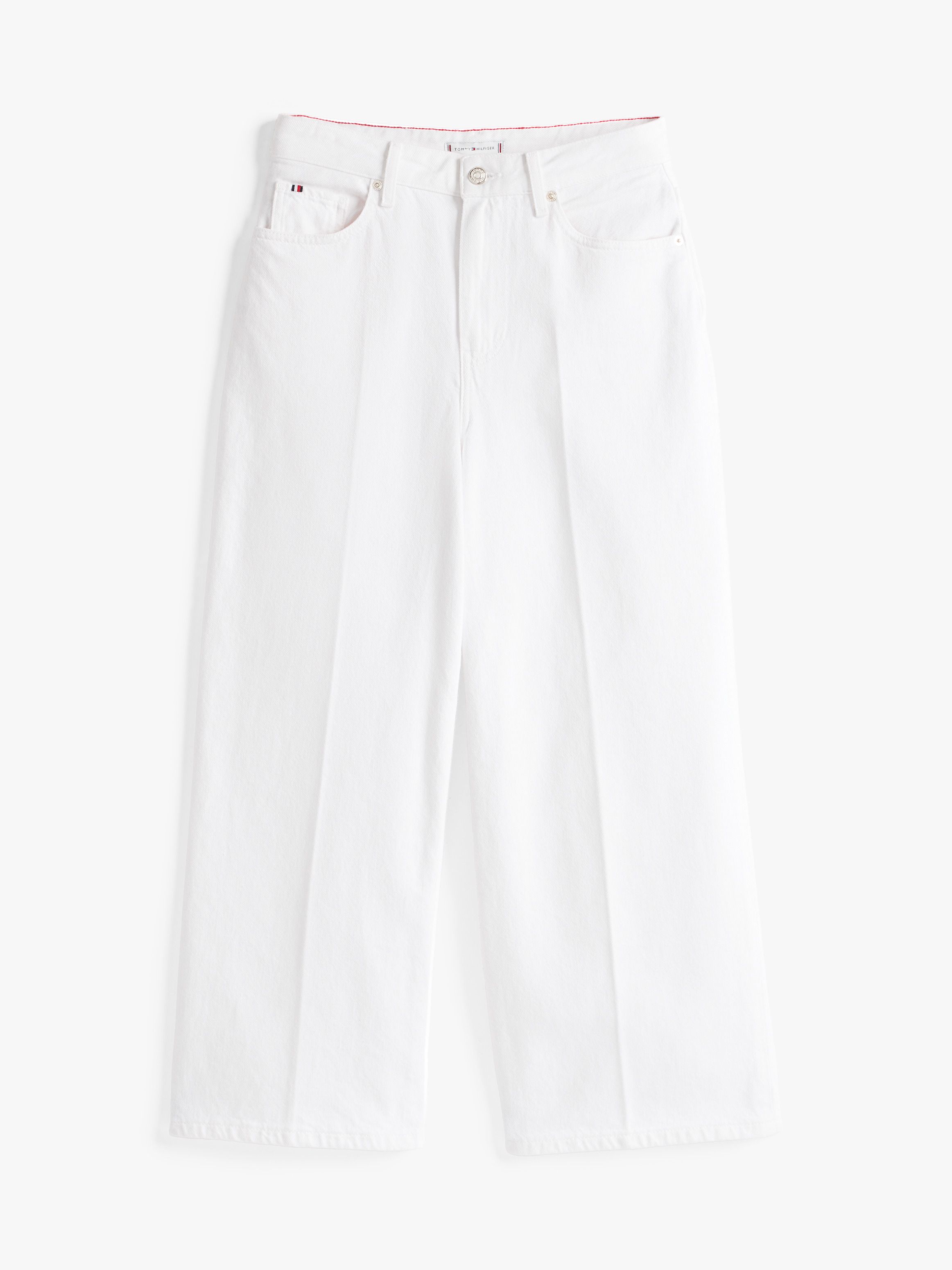 بنطلون جينز بخصر عالي وقصة مستقيمة بطول الكاحل، يضفي هذا الجينز لمسة أنيقة مدعومة بطيات بارزة تمنحه طابعاً فائق الأناقة. أبرز التفاصيل: • قماش جينز متين. • طيات بارزة على الجهة الأمامية والخلفية. • سحاب مع زر إغلاق. • تصميم بخمس جيوب. • تفاصيل علامة "تومي هيلفيغر". • علم "تومي هيلفيغر" مطرز على الجيب الخلفي. القصة والمقاس: • قصة رجل واسعة. • خصر عالي. • بطول الكاحل. • طول العارضة 1.76 متر، وترتدي المقاس 28/32. الخامة والعناية: • 100% قطن.