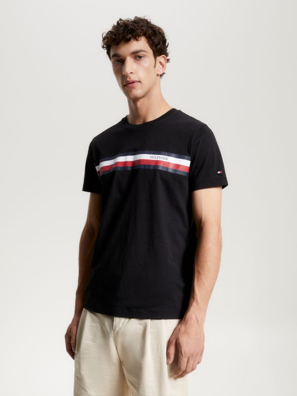 يتميز هذا التيشيرت بقصة ضيقة وعلامة هيلفيغر التجارية، بالإضافة إلى تصميم بياقة دائرية ومصنوع من القطن الجيرسيه.