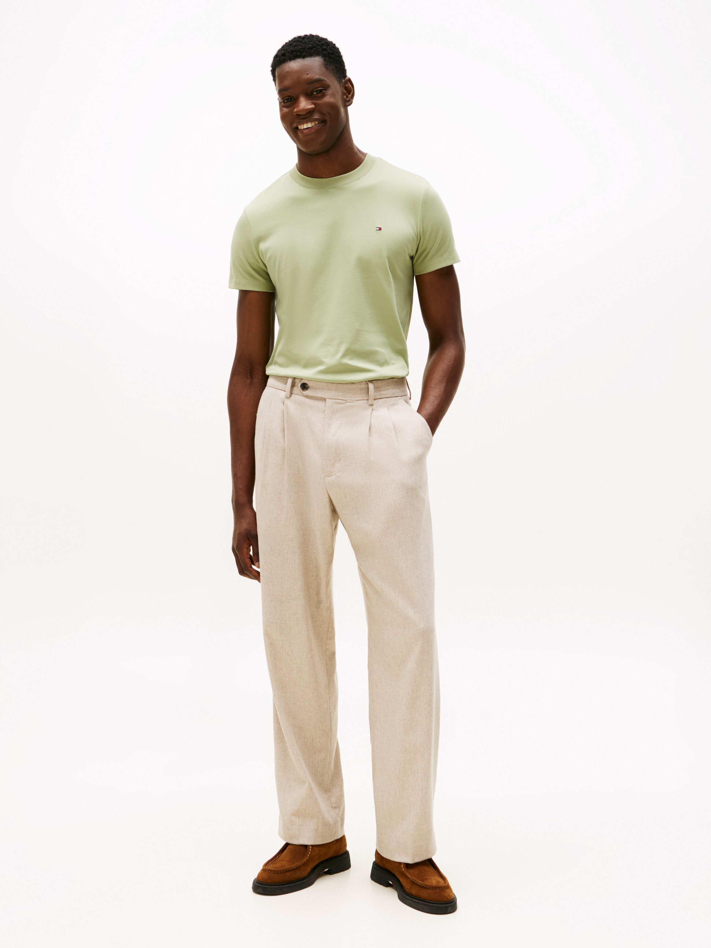 تصميم أنيق وخفيف مثالي للإطلالات اليومية أو لتنسيقات أكثر رسمية تحت السترات، يتميز براحة فائقة وتفاصيل تومي الأيقونية التي تضفي لمسة فاخرة على الأساسيات.