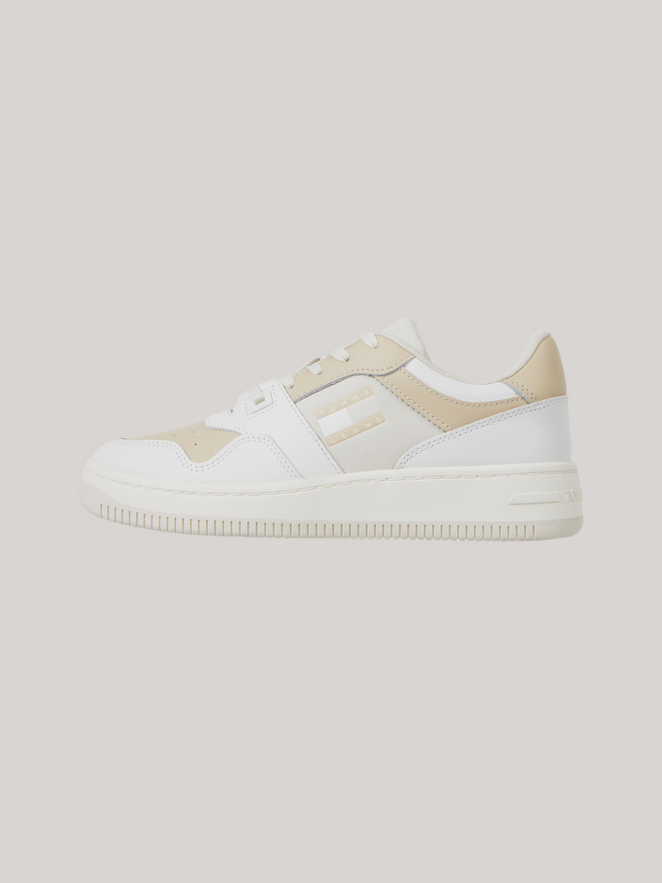 • جزء علوي جلد مختلط • بطانة بوليستر • نعل داخلي من البولي يوريثين والبولي يوريثين المعاد تدويره والمطاط الحراري قابل للإزالة • نعل خارجي مطاطي • فتحات للتهوية على الجزء العلوي • علامة تومي على الجانب واللسان • تطريز شعار تومي جينز على الكعب • علامة تومي جينز التجارية