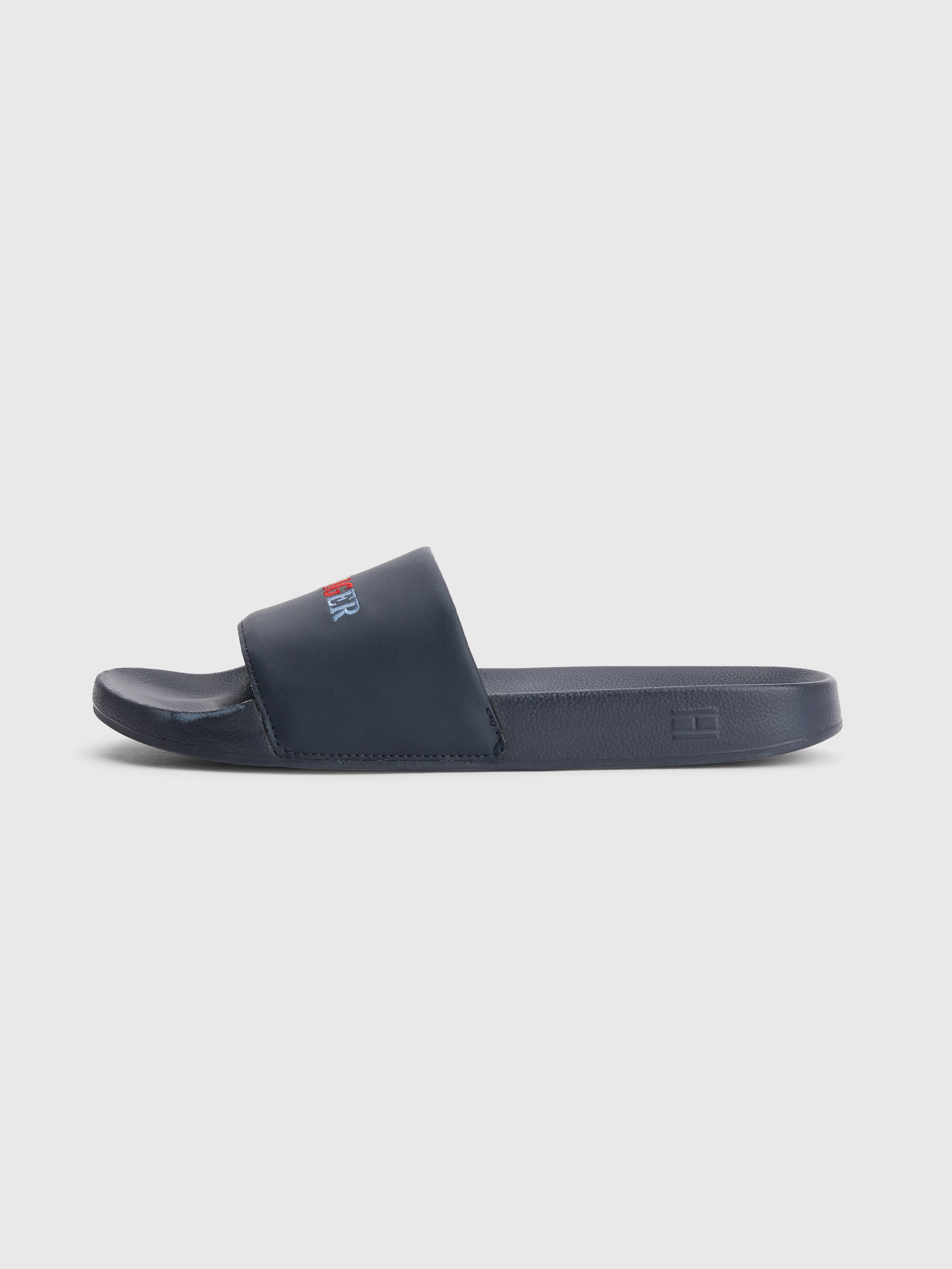 • جزء علوي من مزيج البولي يوريثان • بطانة بوليستر • وسادة قدم من البوليستر • نعل EVA • وسادة قدم مخططة • شعار تومي هيلفيغر على الحزام • علامة تومي هيلفيغر التجارية