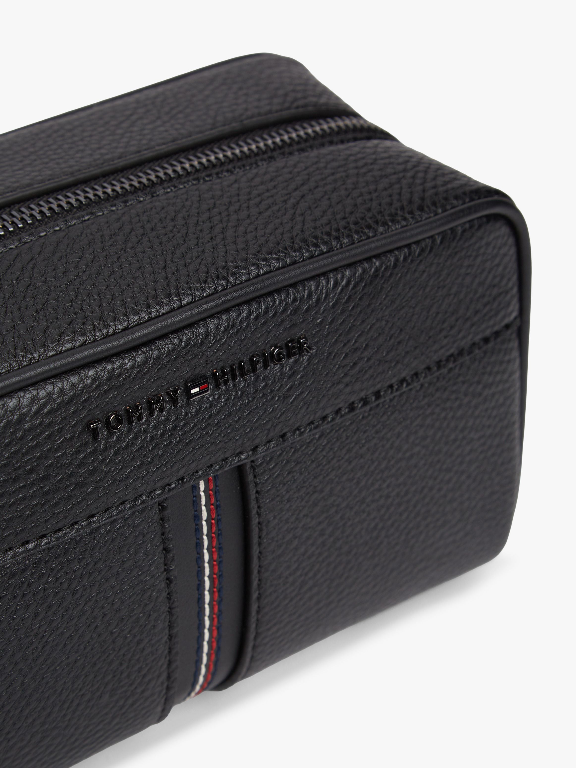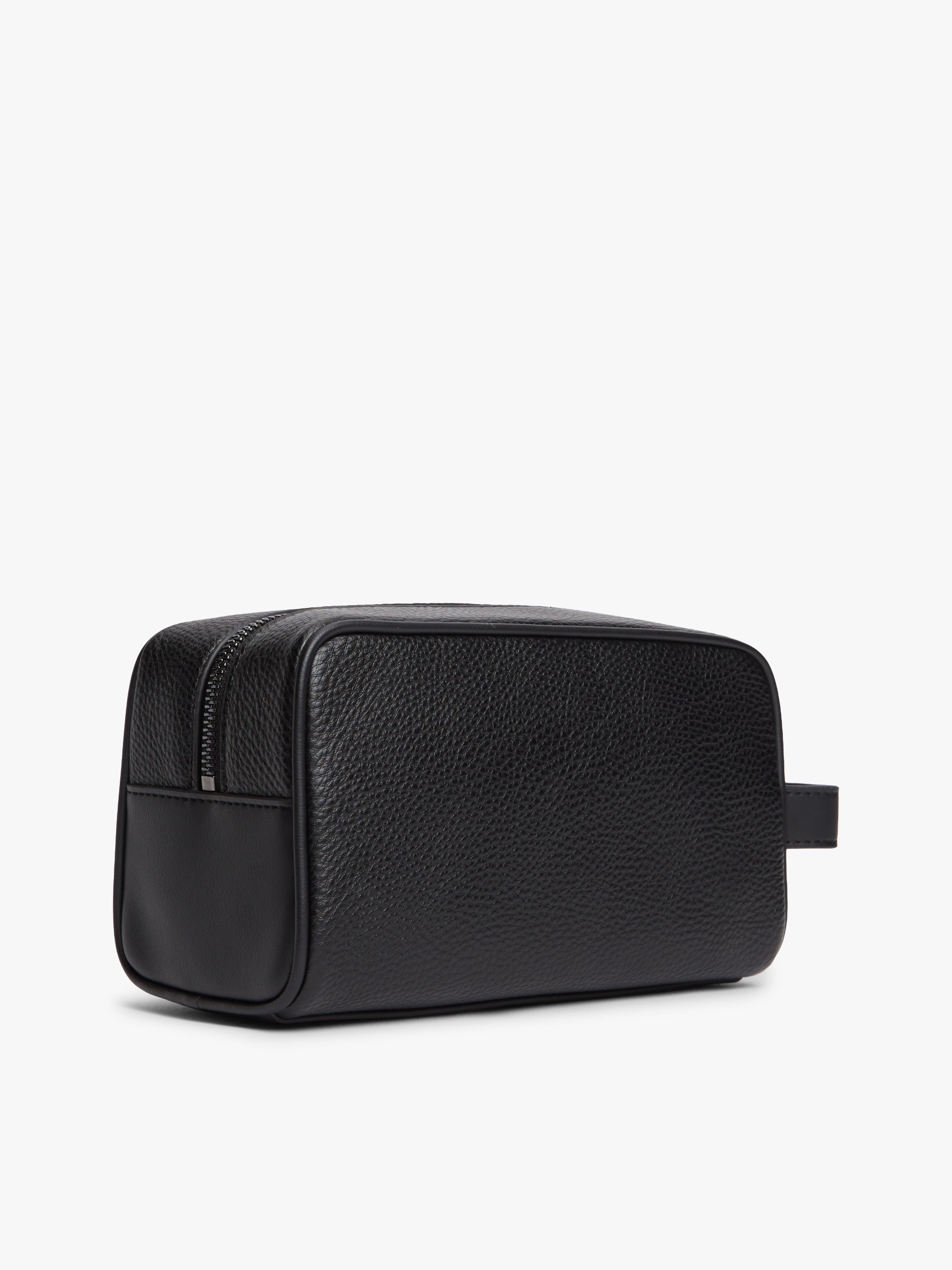 • حقيبة مستلزمات شخصية جلدية بنقشة محببة مزينة بشعار معدني