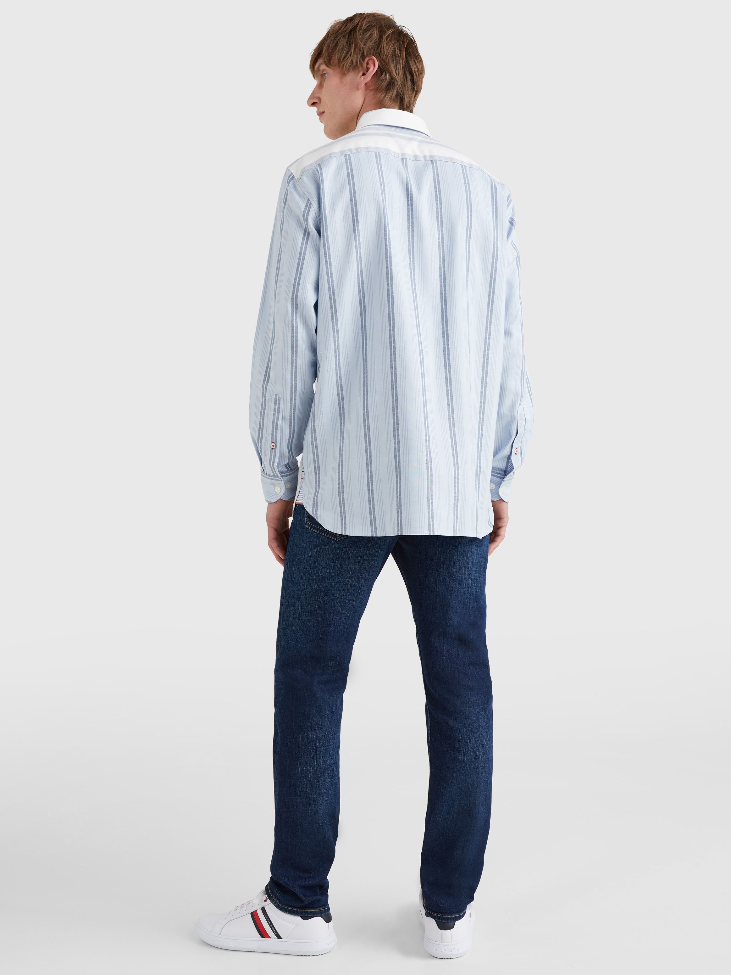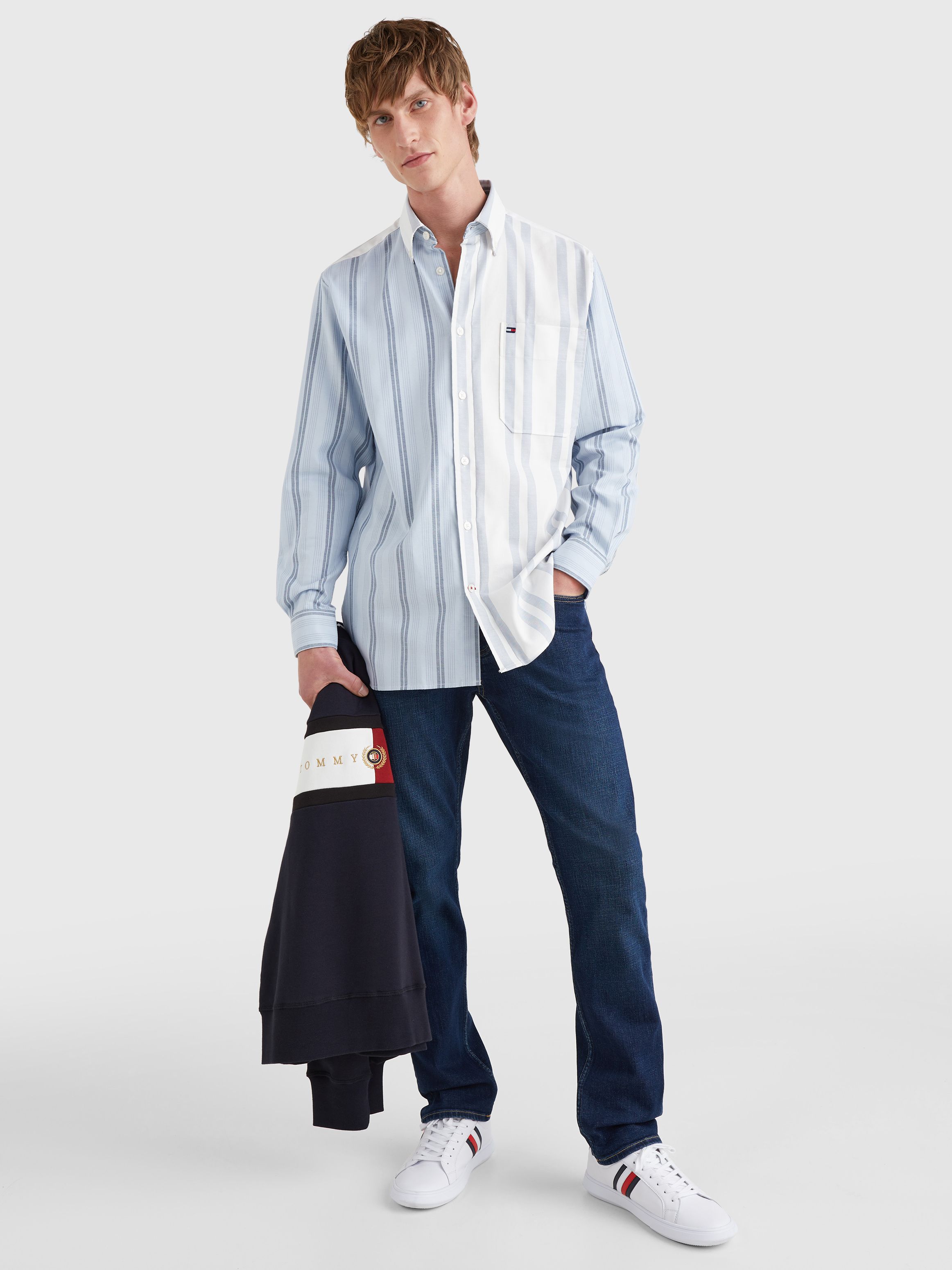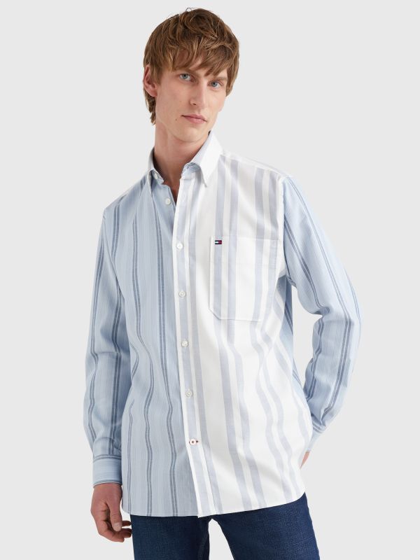 • قطن أكسفورد نقي • طبعة خطوط • ياقة بأزرار • أساور دائرية ذات زرين • جيب أمامي واحد • علامة تومي هيلفيغر التجارية • شعار تومي هيلفيغر مطرز على الصدر والأساور