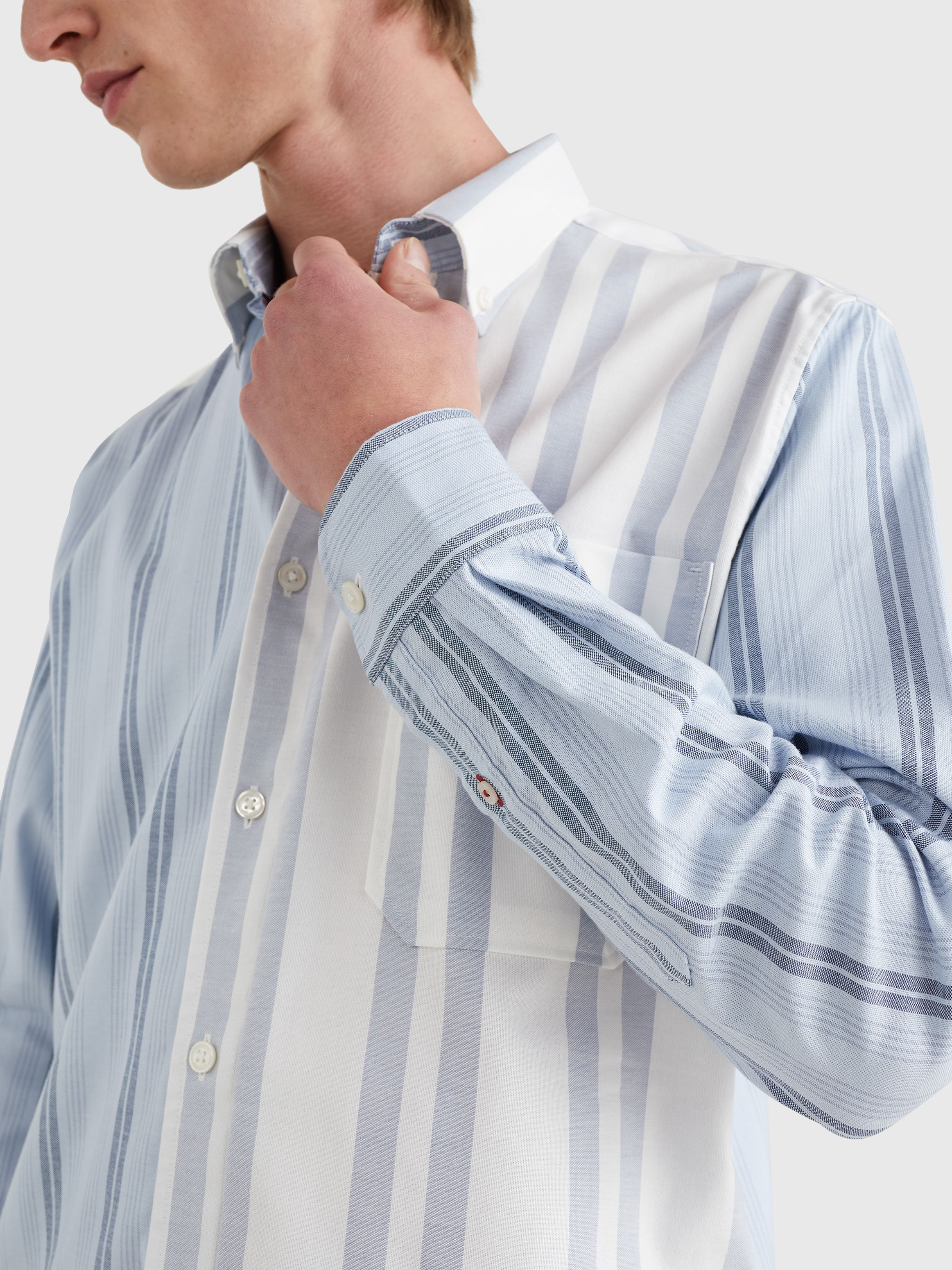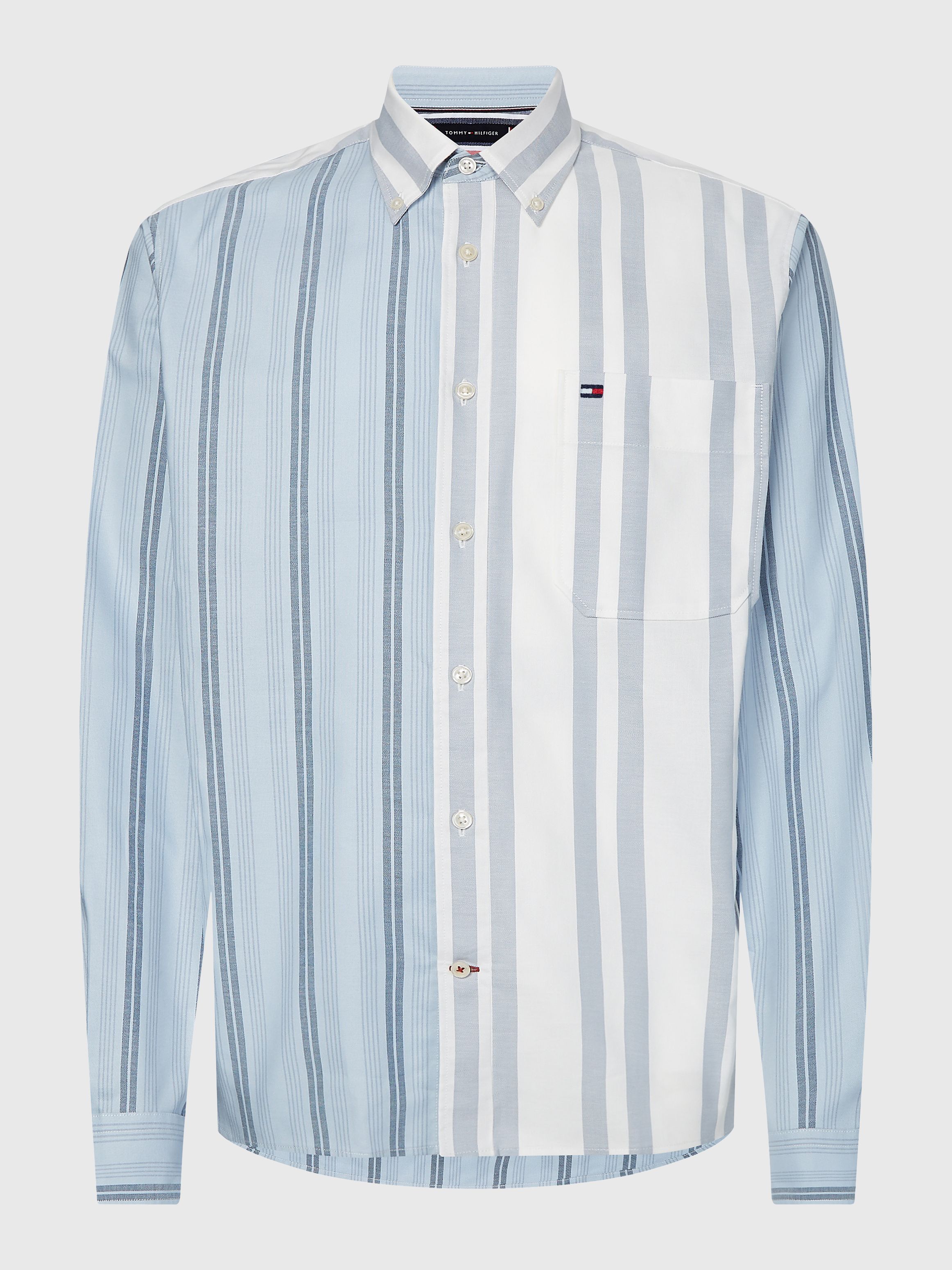 تألق بقميص أكسفورد والذي يتميز بمزيج من الطباعة الكلاسيكية، حيث أنه يجمع بين طبعات مخططة مختلفة لإضفاء مظهر رقيق وخاطف للأنظار.