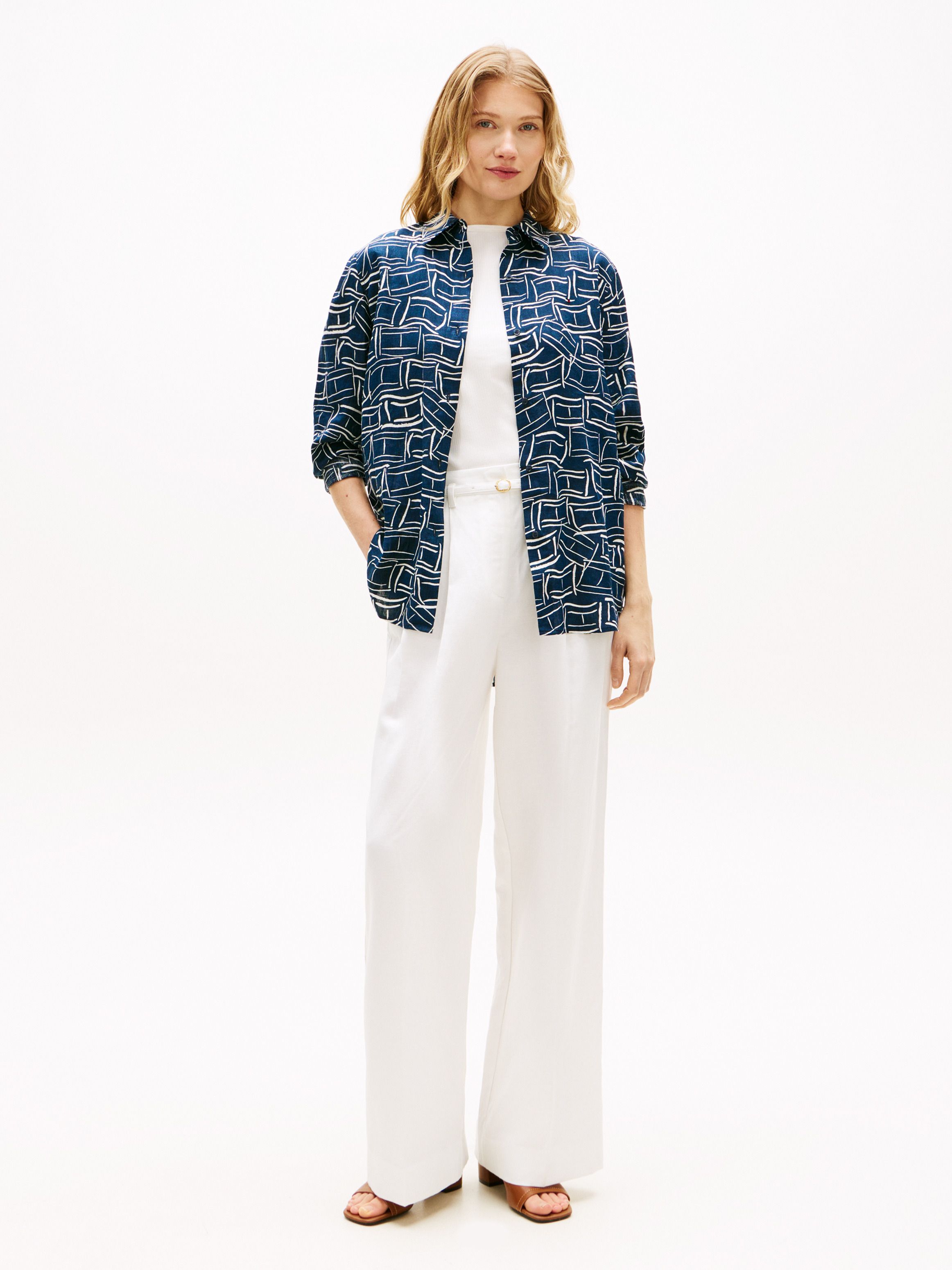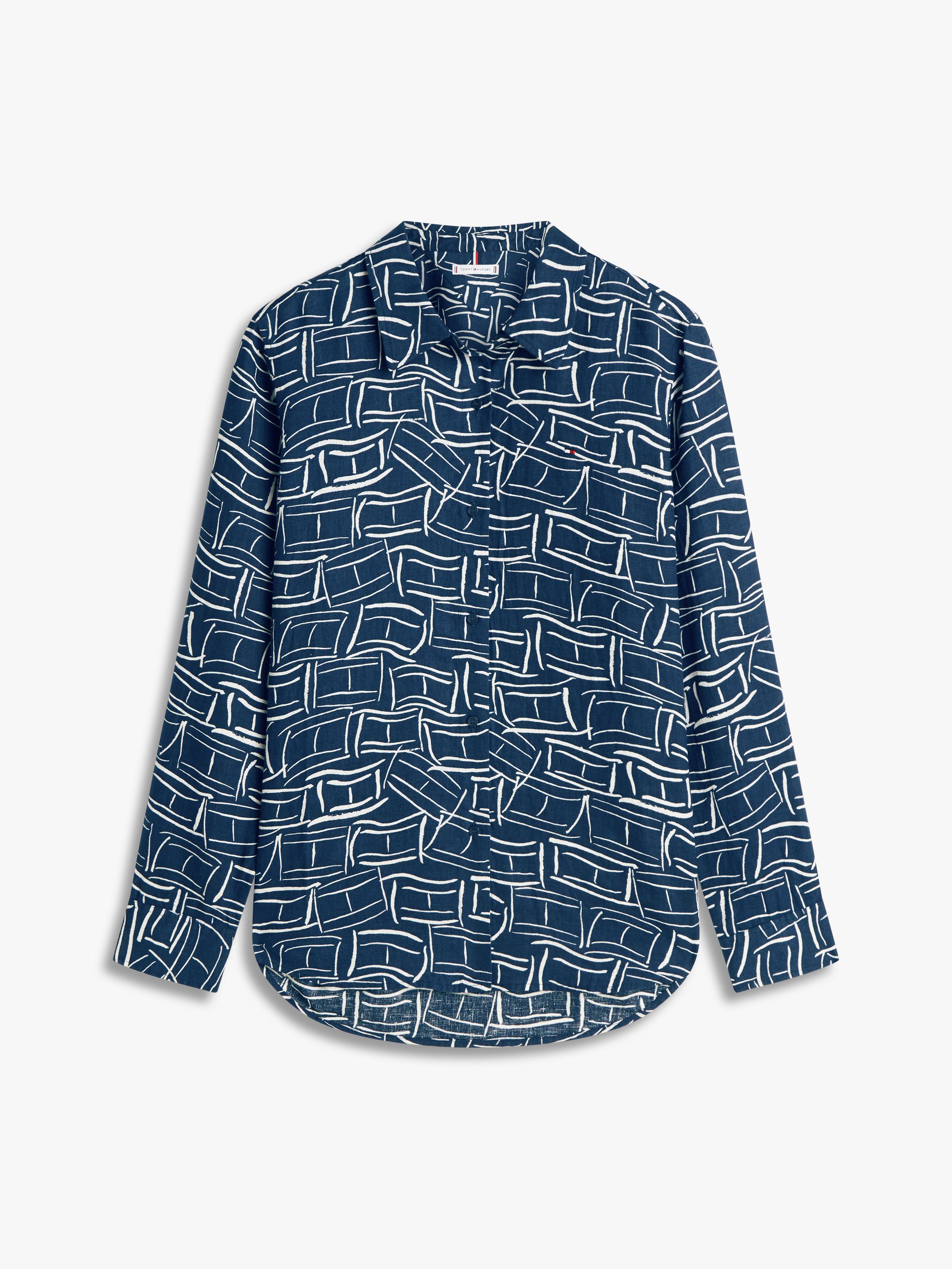 قميص من الكتان النقي بقصة مريحة يمنح إطلالة منعشة، مصنوع من كتان نقي مصبوغ بالخيوط لمظهر عالي الجودة.