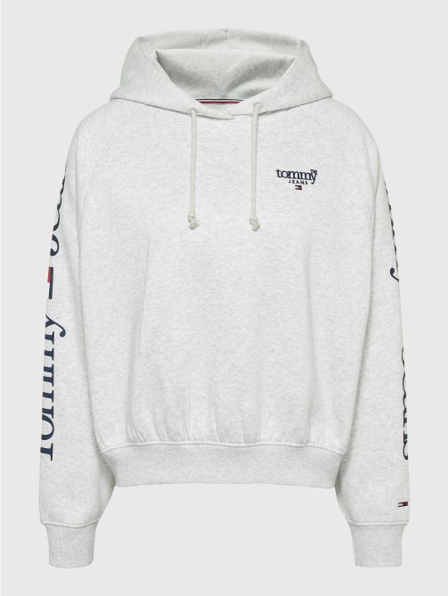ارتقي بمظهرك الكاجوال مع هذا الهودي المريح الذي يخطف الأنظار بفضل شعار تومي على الصدر والأكمام.