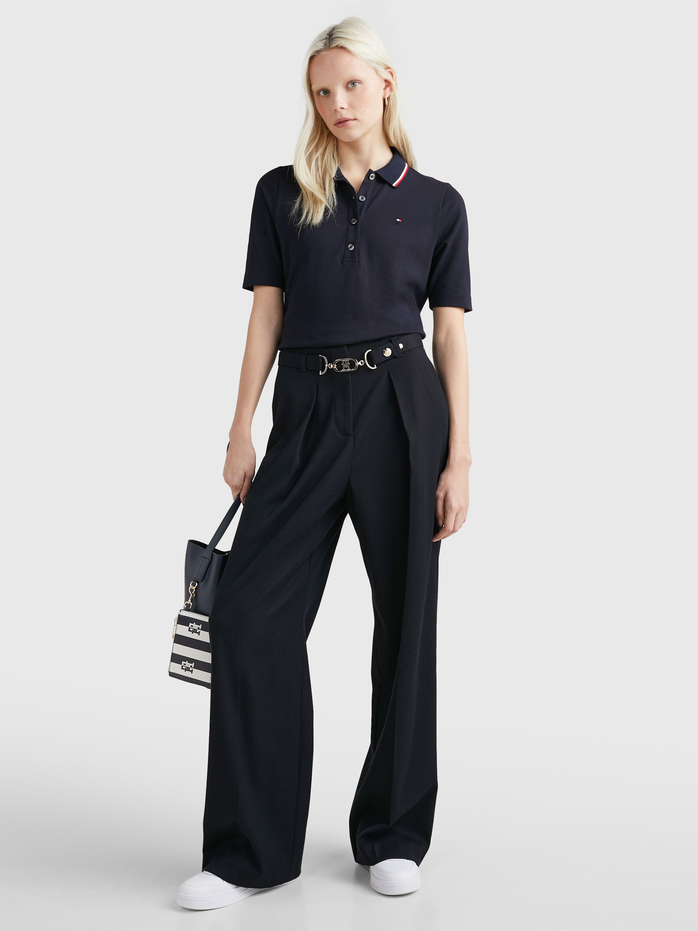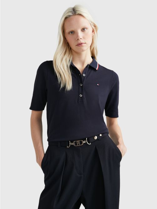 تضيف ألوان التوقيع على الياقة والحافة لمسة مميزة إلى هذا التيشيرت البولو المصنوع من قطن بيكيه مطاطي.