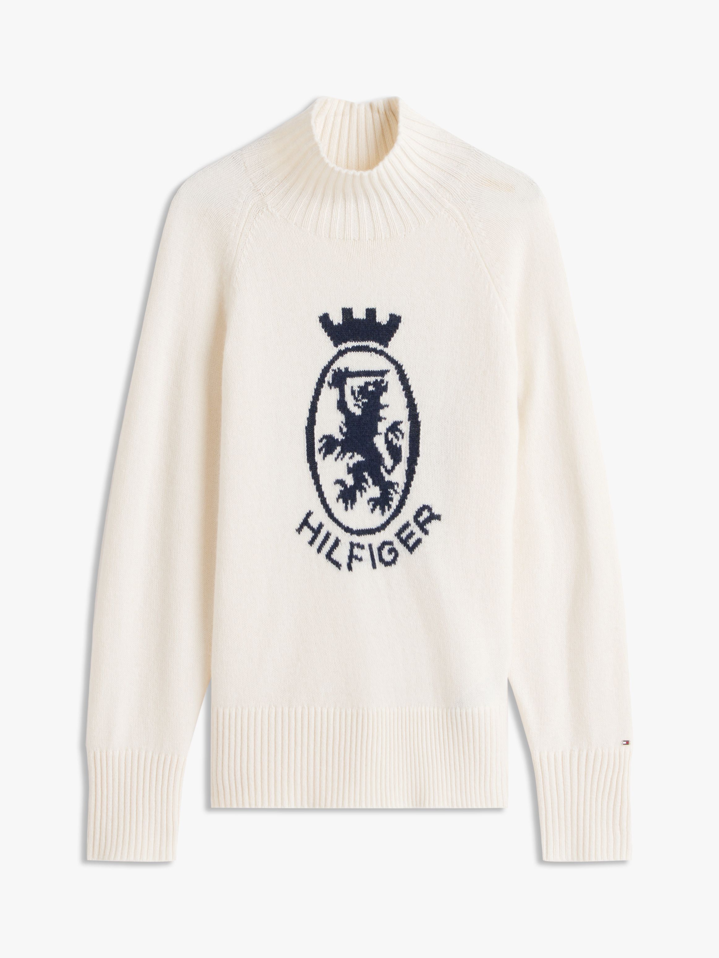 انتقلي بسلاسة من أجواء النهار إلى المساء مع البلوفر من الصوف بياقة مرتفعة قصيرة مزين بشعار TH، بتصميم أنيق مصنوع من صوف نقي وحياكة ناعمة، ما يجعله خيارًا مثاليًا للدفء والأناقة في آنٍ واحد.