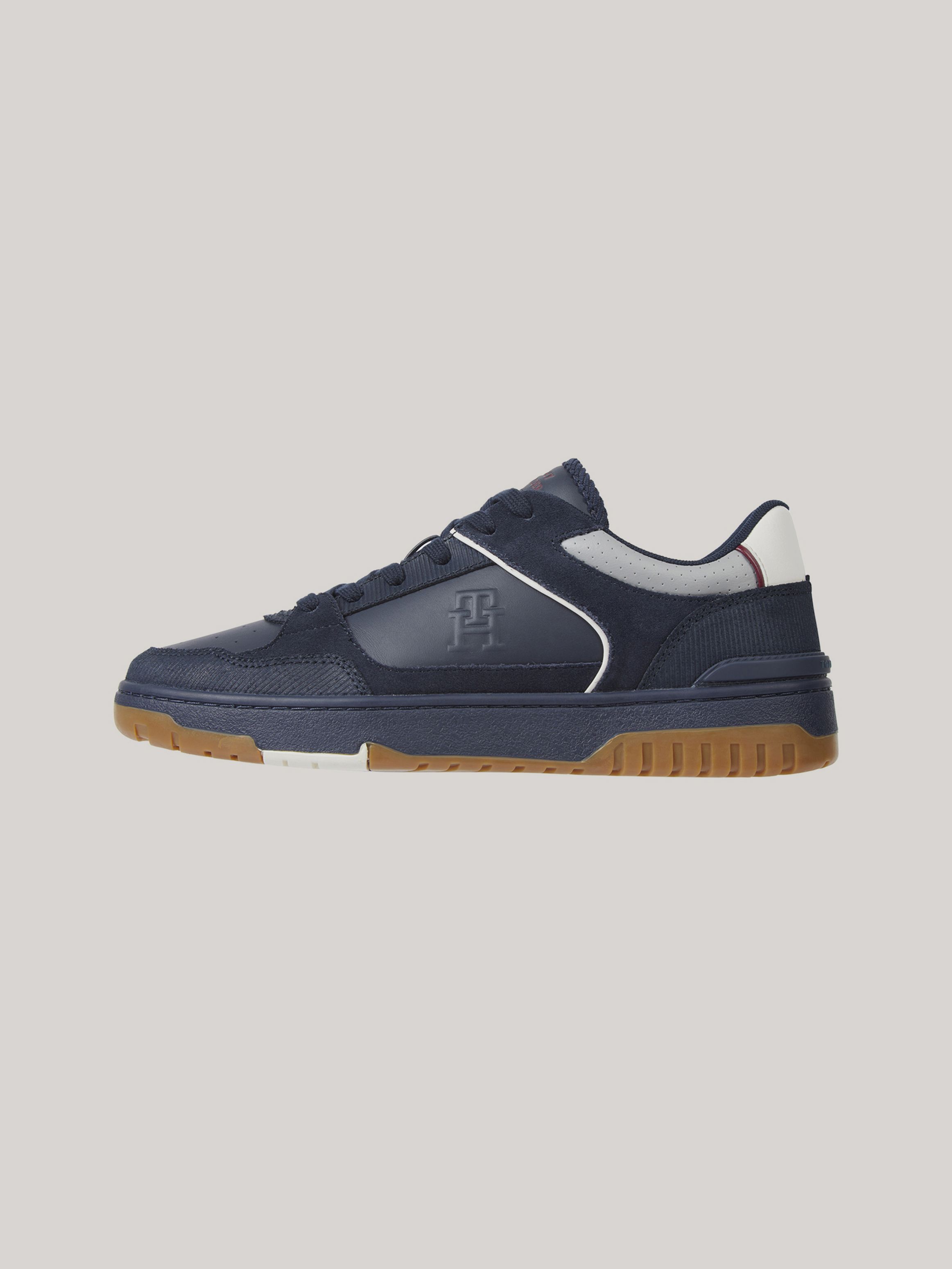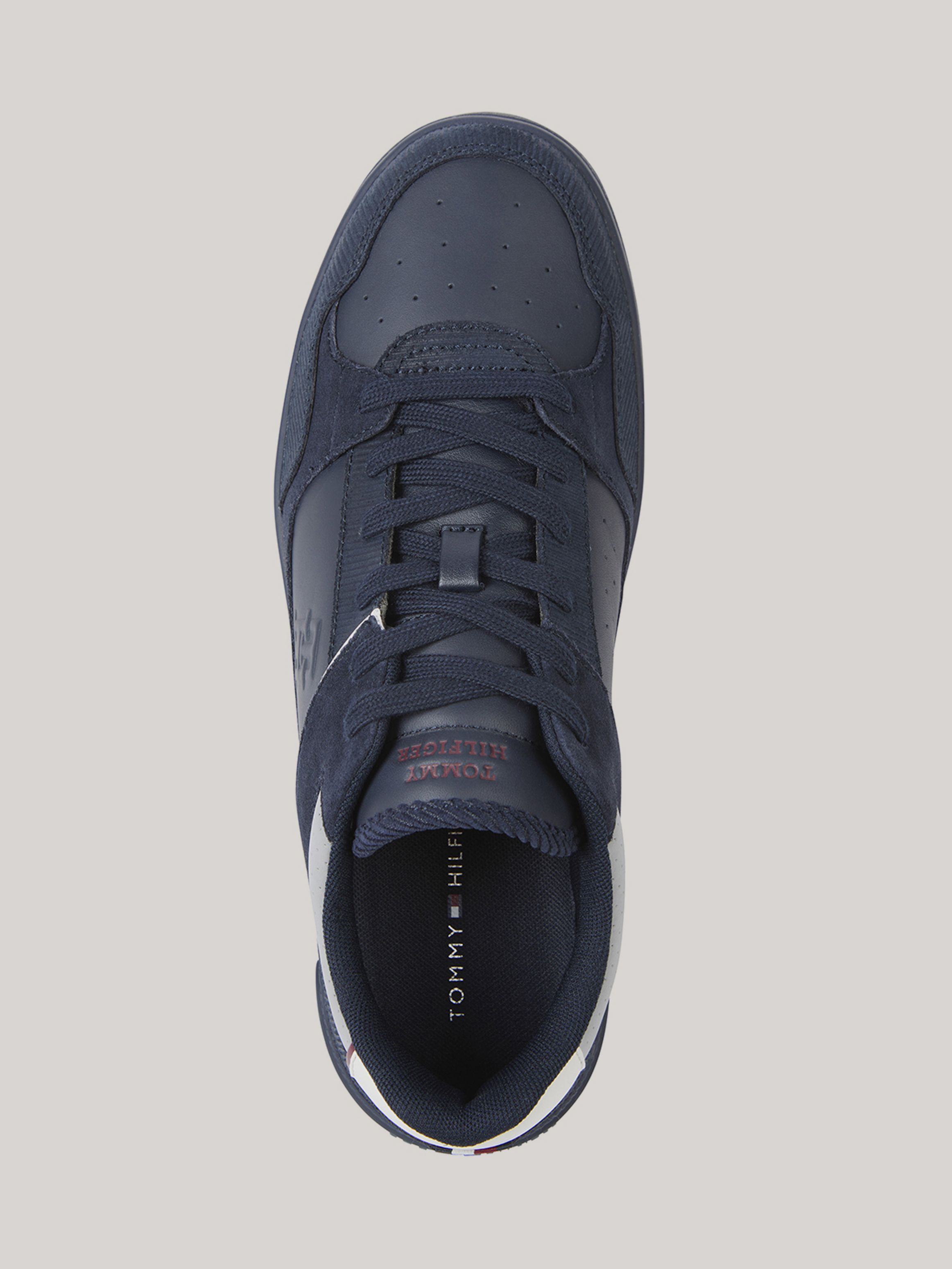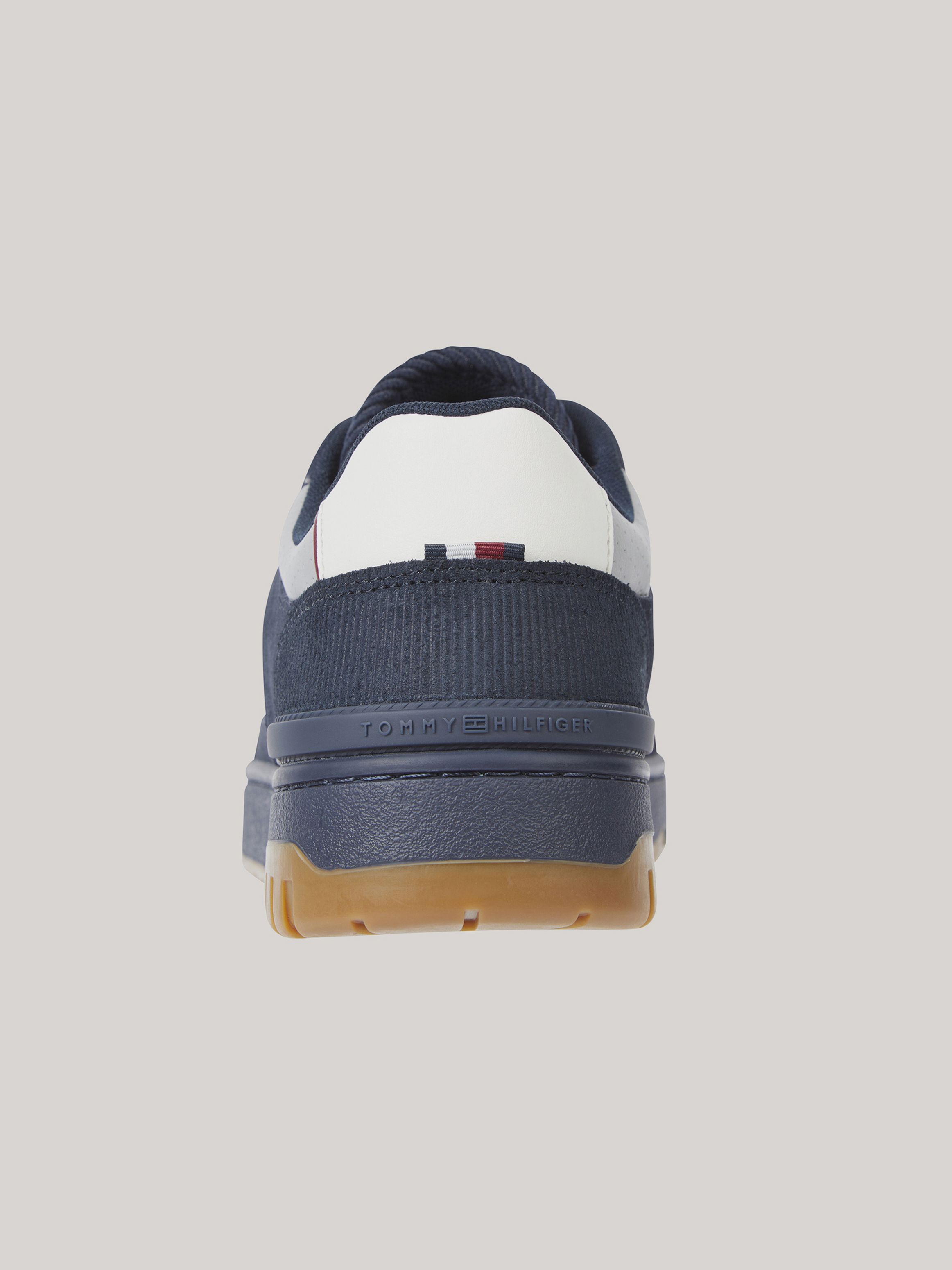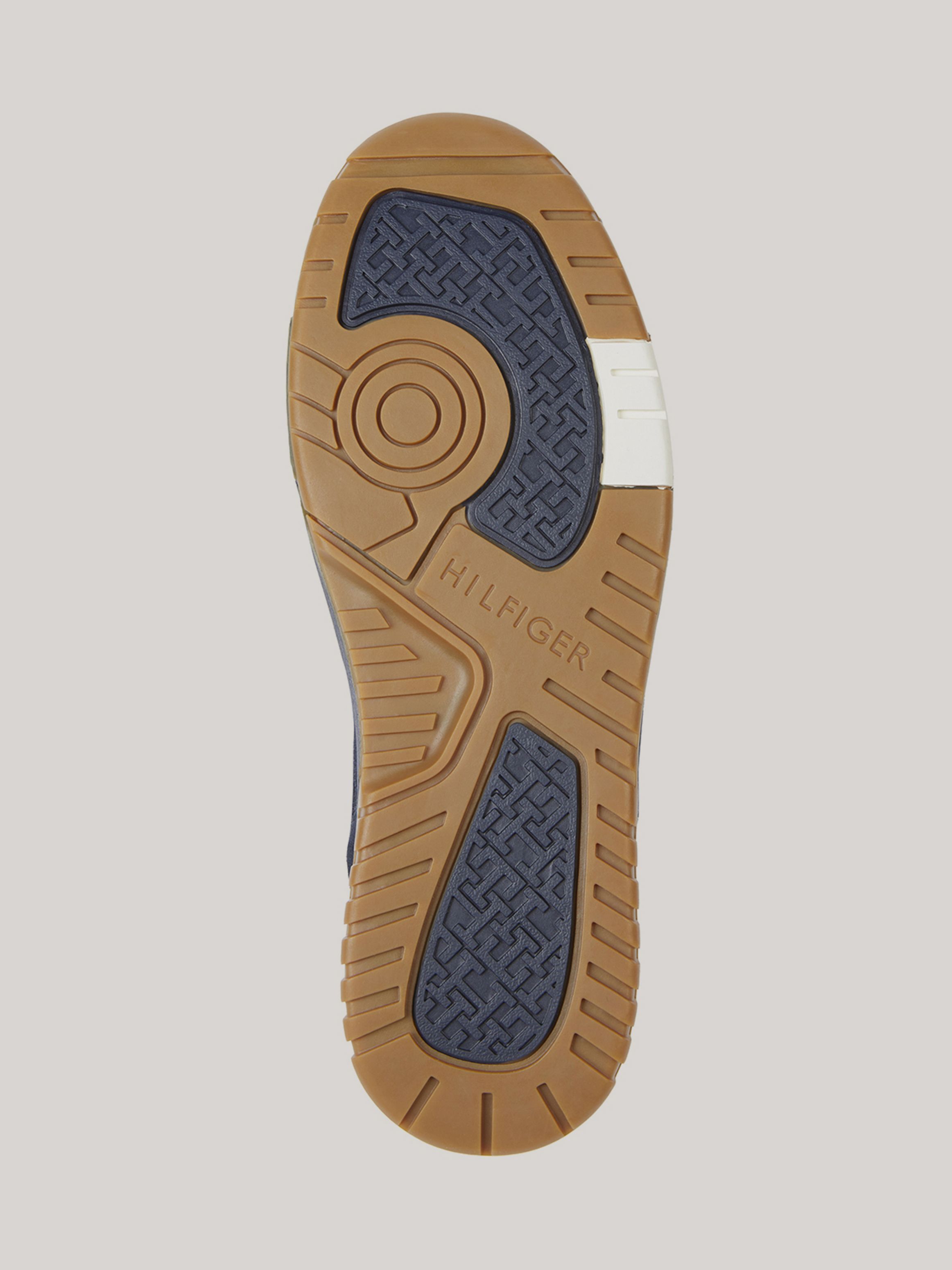 تضيف الأنسجة ذات الملمس الناعم لمسة مميزة على الحذاء السنيكرز بتصميم كرة السلة، كما يتميز بتطريز شعار تومي هيلفيغر والعلامة التجارية على الكعب..