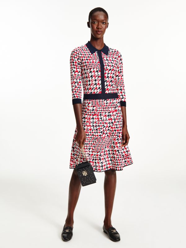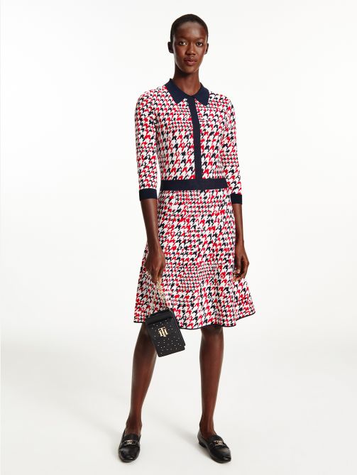 • فستان بولو ضيق بأكمام ثلاثة أرباع